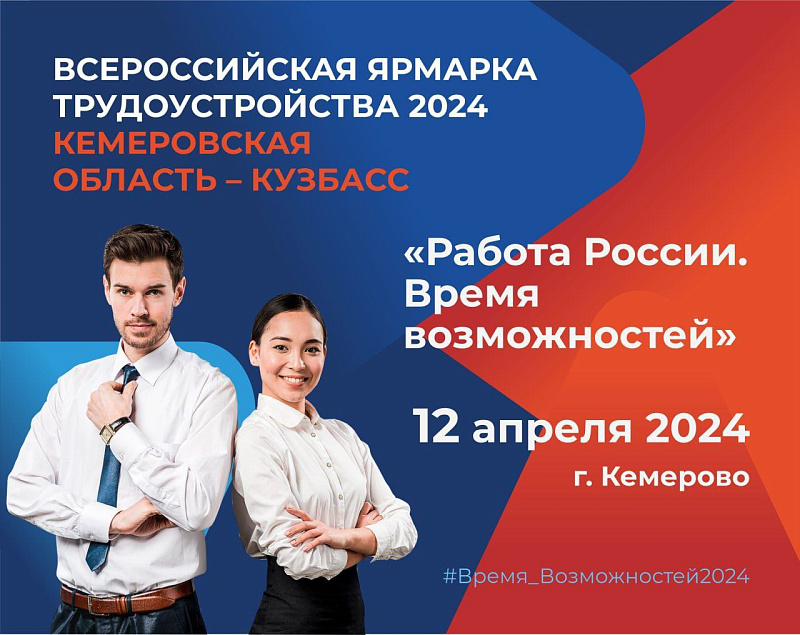 12 апреля в Кадровом центре «Работа России» города Кемерово состоится региональный этап Всероссийской ярмарки трудоустройства
