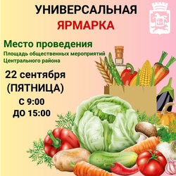 22 сентября с 9-00 до 15-00 на Площади общественных мероприятий Центрального района пройдет городская универсальная ярмарка, посвященная празднованию Дня уважения старшего поколени