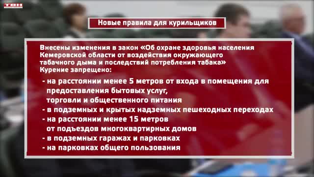 Ко второму чтению правила были дополнены. Кроме пунктов, озвученных выше, курение в Кузбассе будет запрещено на расстоянии менее 15 метров от подъездов, в подземных гаражах, а также на парковках общего пользования.