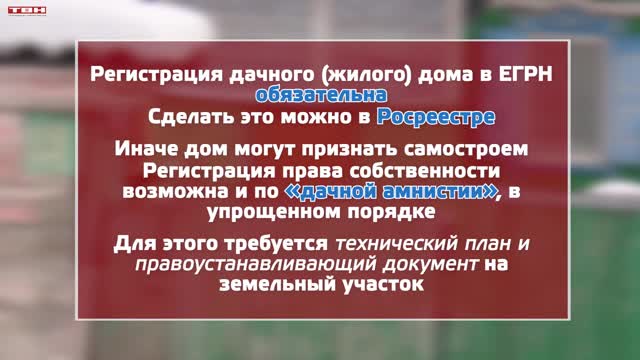 Право собственности фиксируется в едином государственном реестре недвижимости. Без процедуры, дом могут признать самостроем. Зарегистрировать право собственности можно по «дачной амнистии», то есть в упрощенном порядке. Требуется только технический план и правоустанавливающий документ на земельный участок.