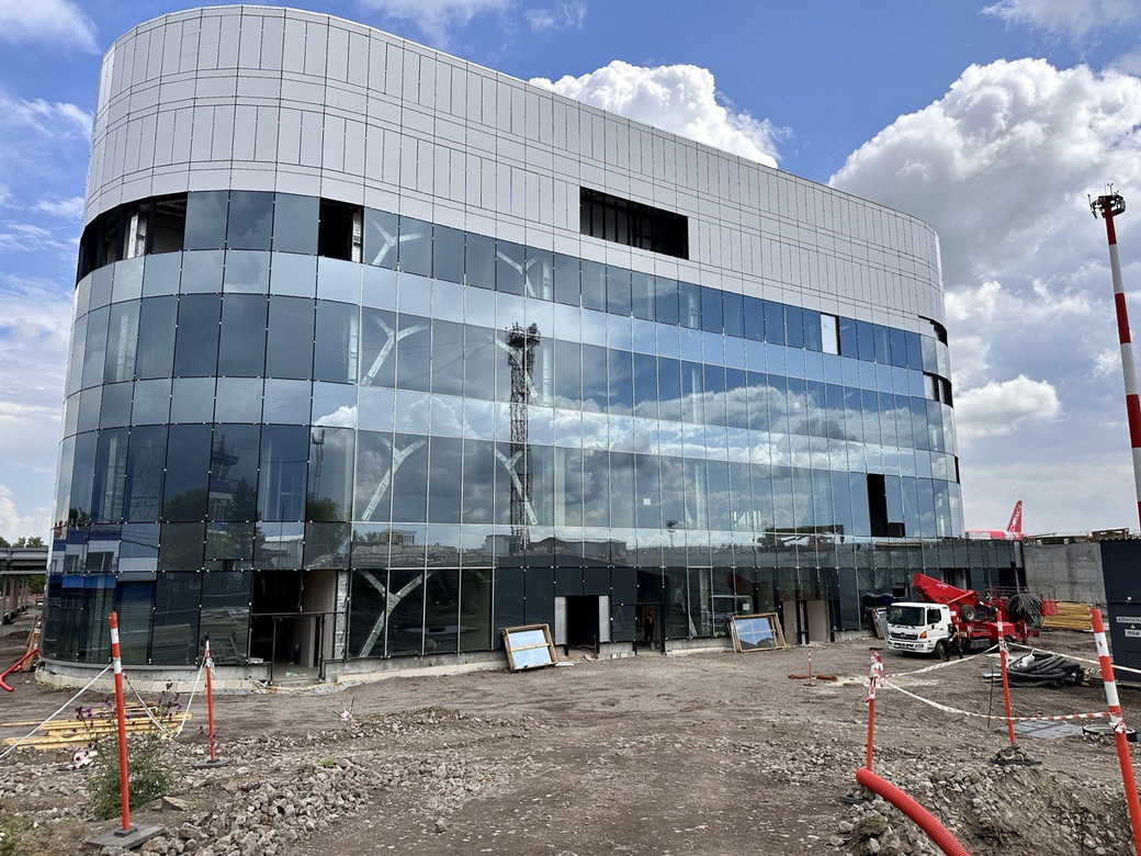 Сейчас полностью смонтированы и испытаны наружные инженерные сети. Завершены работы по монтажу каркаса здания аэровокзального комплекса и кровли. Монтаж алюминиевых конструкций фасада выполнен на 95%, остекление фасада — на 80%.
