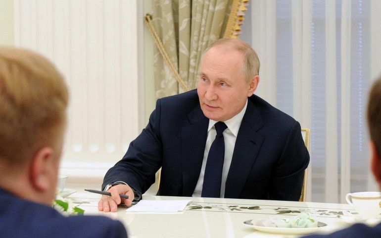 Президент России Владимир Путин встречается с руководством организации «Деловая Россия» для обсуждения вопросов, связанных с преодолением санкционного давления и мерами поддержки бизнеса.
