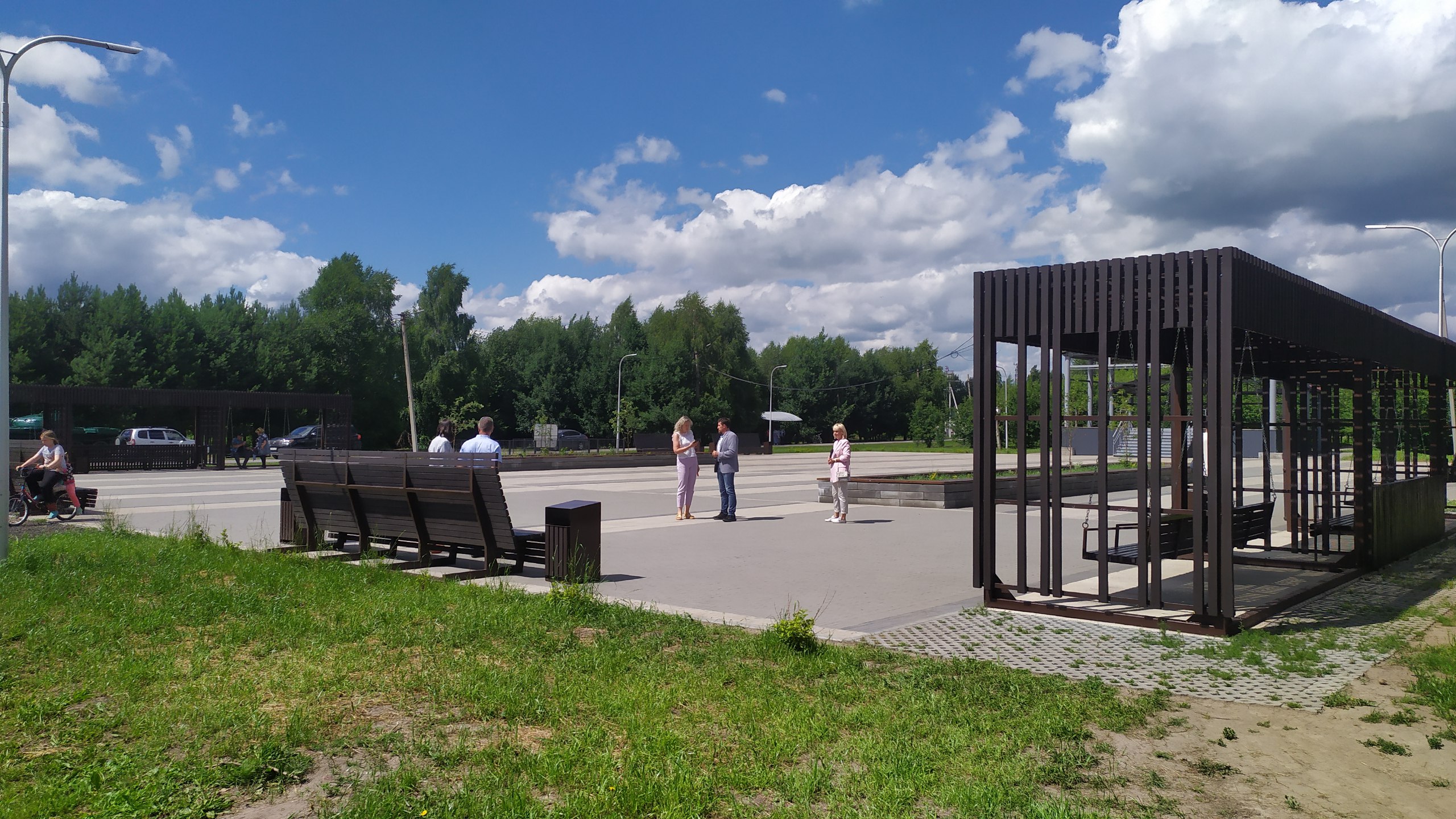 В Юрге преобразили 49 объектов: 36 дворовых и 13 общественных территорий. Одна из благоустроенных зон — сквер кавалера ордена Славы трех степеней Георгия Басырова. Территория вымощена тротуарной плиткой, установлены входные арки, уличные фонари, парковые диваны, оборудованы места для настольных игр и мини-сцена.