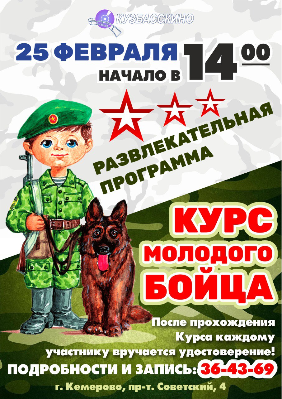 25 февраля в 14:00 в Арт-зале Кузбасскино для кемеровчан и гостей столицы пройдет развлекательная программа «Курс молодого бойца», в рамках празднования Дня защитника Отечества.