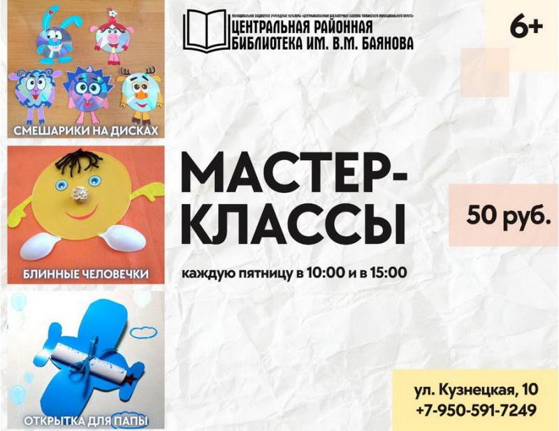 10 февраля здесь прошёл мастер-класс от художника библиотеки Светланы Викторовны Борисенко, на котором можно было сделать своими руками открытку для папы, смешариков из компьютерных дисков, блинных человечков из тарелок и забавных персонажей из ложек.