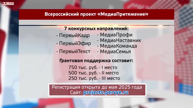Самую большую медиакоманду в этом году ждет 7 направлений, а также три конкурсных этапа и яркий финал в Москве! Лучшие медиакоманды получат грунтовую поддержку на развитие своего сообщества. Регистрация открыта до мая 2025года на сайте projects.pervye.ru.