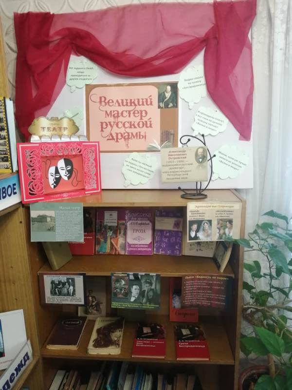 Книжная выставка «Великий мастер русской драмы», посвященная 200-летию А. Н. Островского, начала работать в библиотеке «Семейного чтения».