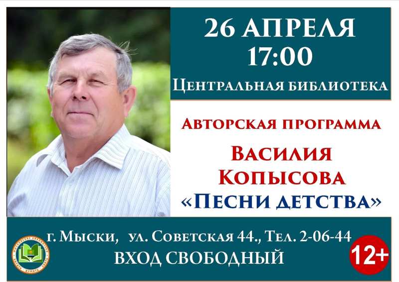 Анонс. Мысковчан приглашают на творческую встречу с литератором Василием Копысовым «Песни детства»