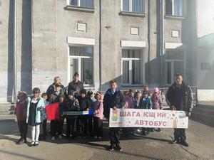 Сотрудники Госавтоинспекции провели акцию «Шагающий автобус» для учащихся МБОУ "СОШ №3 города Юрги".