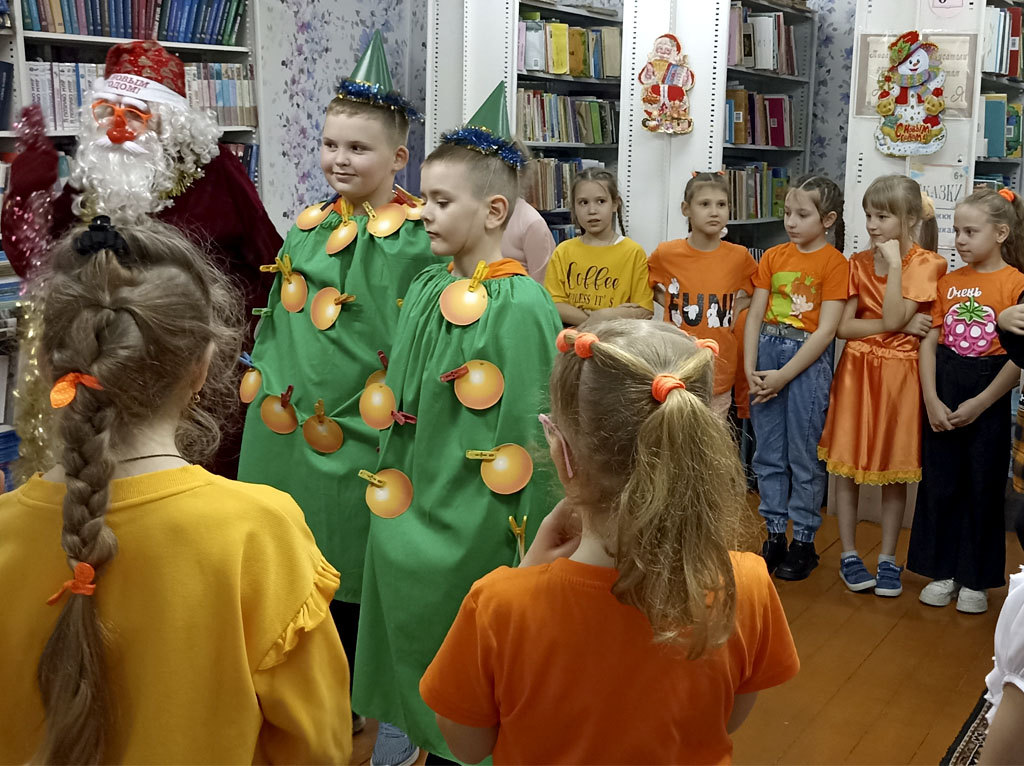 В первые дни зимних каникул городская библиотека-филиал № 2 принимала у себя в гостях ребят 2 «В» класса (кл. руководитель Л.Д. Шевченко) школы № 7 на книжной выставке-игротеке «Оранжевое чудо с запахом ЗИМЫ» в рамках Снежной недели в библиотеке «Новогодний БИБЛИОМИКС». «Входным билетом» этого мероприятия были оранжевые, желтые, красные элементы в одежде: аксессуары для волос, одежда, новогодние атрибуты и другое.