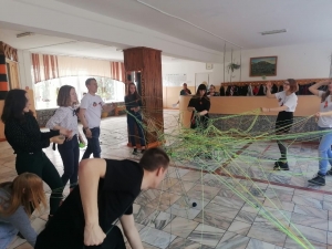 В патриотической игре приняли участие две команды студентов-первокурсников. Ребятам нужно было пройти ряд спортивных и интеллектуальных испытаний, для того чтобы выполнить главную задачу – освободить своих капитанов из плена. За каждый пройденный этап команде вручали георгиевскую ленточку.