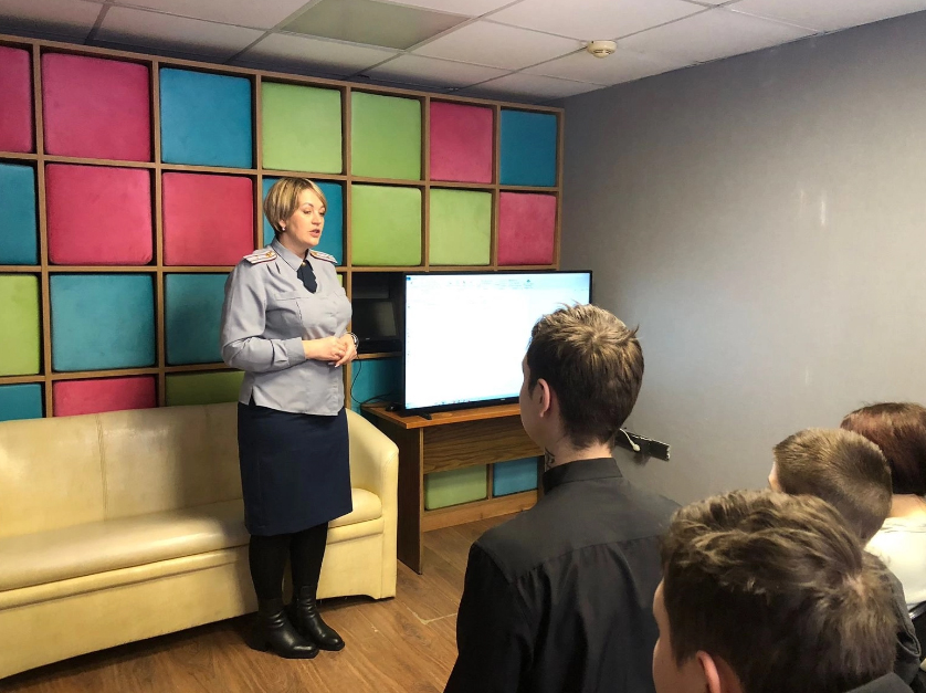 Для результативной работы в рамках Школы было организовано несколько занятий. Первое занятие проходило с психологом уголовно - исполнительной инспекции Евгенией Владимировной Капитоненко, она рассказала о том, что может ждать ребят в случае правонарушений. Далее продолжил эту тему Роман Дмитриевич Кузнецов, сотрудник отдела ФСБ города Ленинска- Кузнецкого.