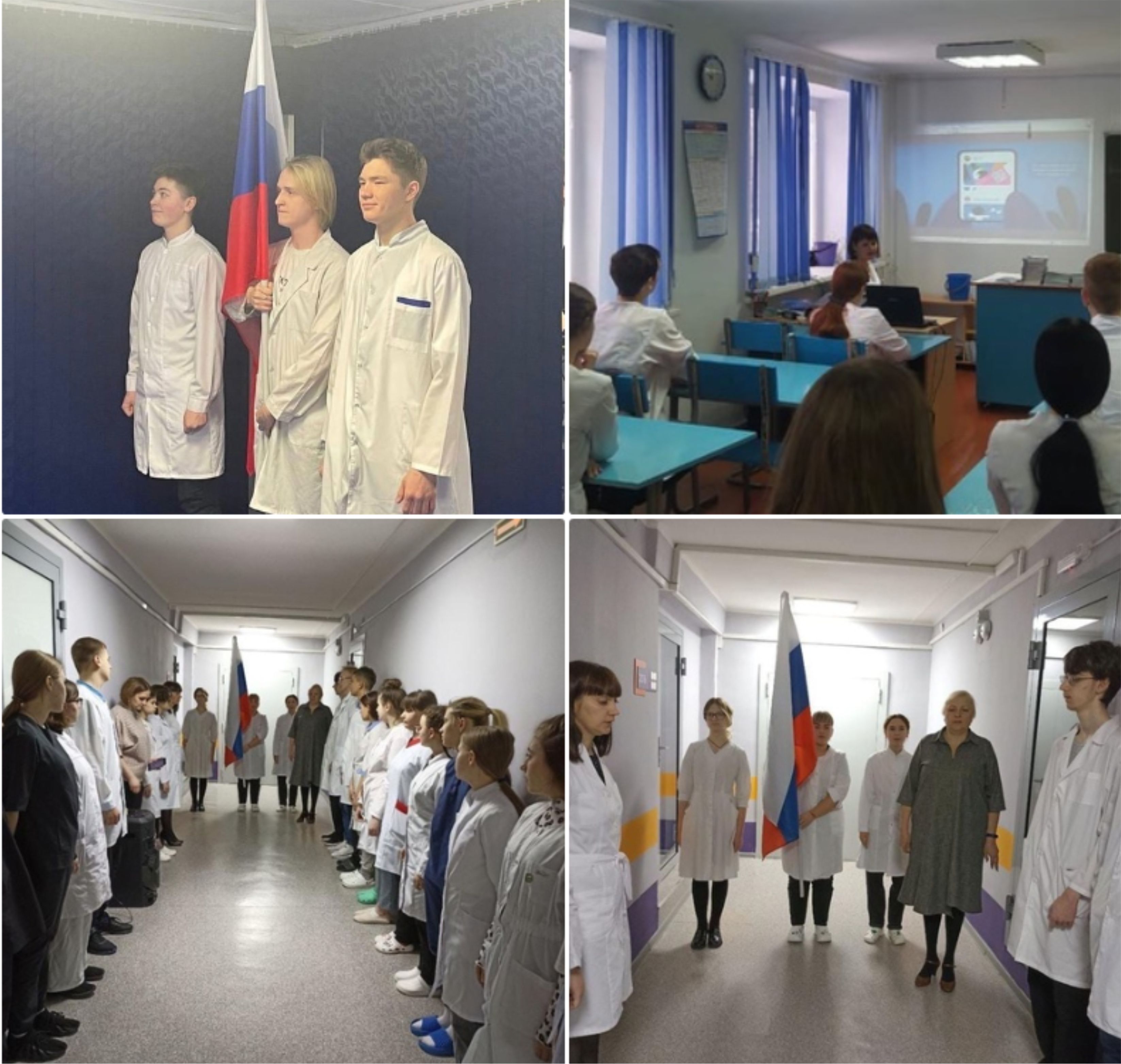 Утро 23 января в Кузбасском медицинском колледже и его филиалов началось с еженедельной традиционной церемонии выноса флага Российской Федерации и исполнения государственного гимна.