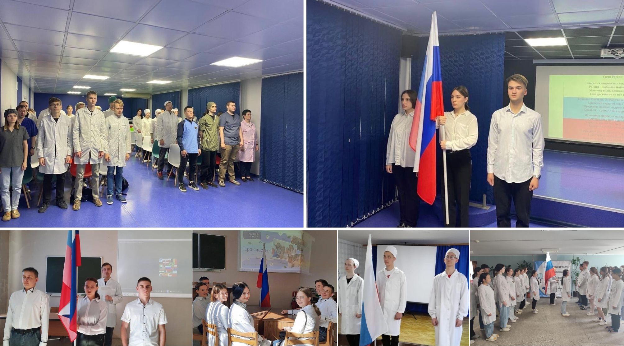 Новая весенняя неделя стартовала в Кузбасском медицинском колледже с церемонии выноса флага Российской Федерации и исполнения гимна страны. Мероприятие традиционно прошло во всех филиалах образовательной организации. Выносили Государственный флаг знаменные группы из числа студентов, ведущих активную волонтерскую, научно-исследовательскую и творческую деятельность.
