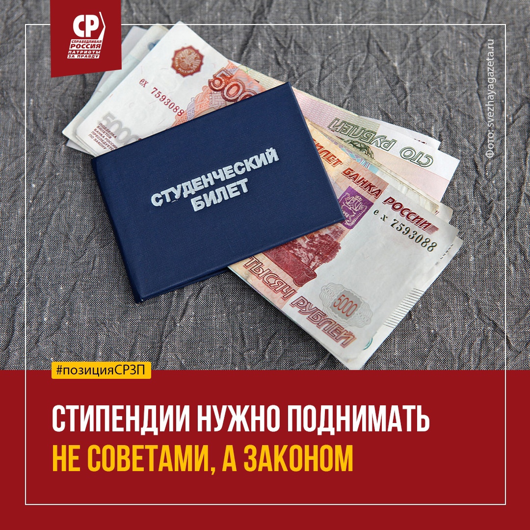 Социалистическая партия "СПРАВЕДЛИВАЯ РОССИЯ – ПАТРИОТЫ – ЗА ПРАВДУ" неоднократно направляла в Правительство РФ и Госдуму РФ законопроект о повышении стипендий до прожиточного минимума.