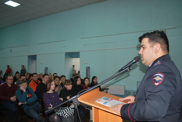 В Новокузнецке состоялась встреча студентов ГБПОУ «Новокузнецкий горнотранспортный колледж имени В. Ф. Кузнецова» с представителями УМВД России по г. Новокузнецку. В гости к студентам пришли заместитель начальника ОРЛС - начальник отделения кадров ОРЛС Управления майор внутренней службы Галина Давидюк, юрисконсульт правового отделения капитан внутренней службы Аслан Сегбятов и старший инспектор группы организации службы ОБДПС новокузнецкой Госавтоинспекции старший лейтенант полиции Анастасия Кораблева. Мероприятие прошло в целях профессиональной ориентации выпускников колледжа и установления доверительных отношений полицейских с гражданами.