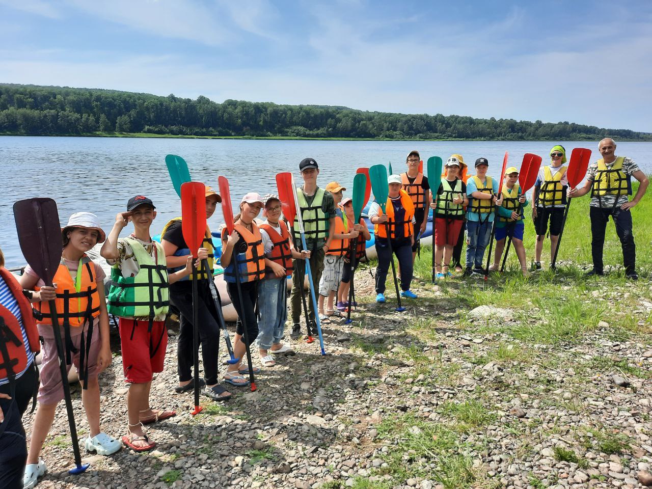 Затем ребята стали участниками водного туристского похода. Отправной точкой маршрута стал туристско-спортивный полигон «Солнечный туристан» в деревне Подъяково. Перед походом ребята познакомились с туристско-бытовыми навыками и с основами водного туризма. По реке Томь участники сплавлялись на катамаранах.