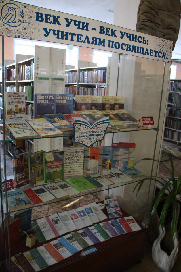 С января по март учителя русского языка и литературы, химии и биологии, географии, физики и математики могут познакомиться с литературой первого раздела выставки - «Мастерская педагогического опыта».