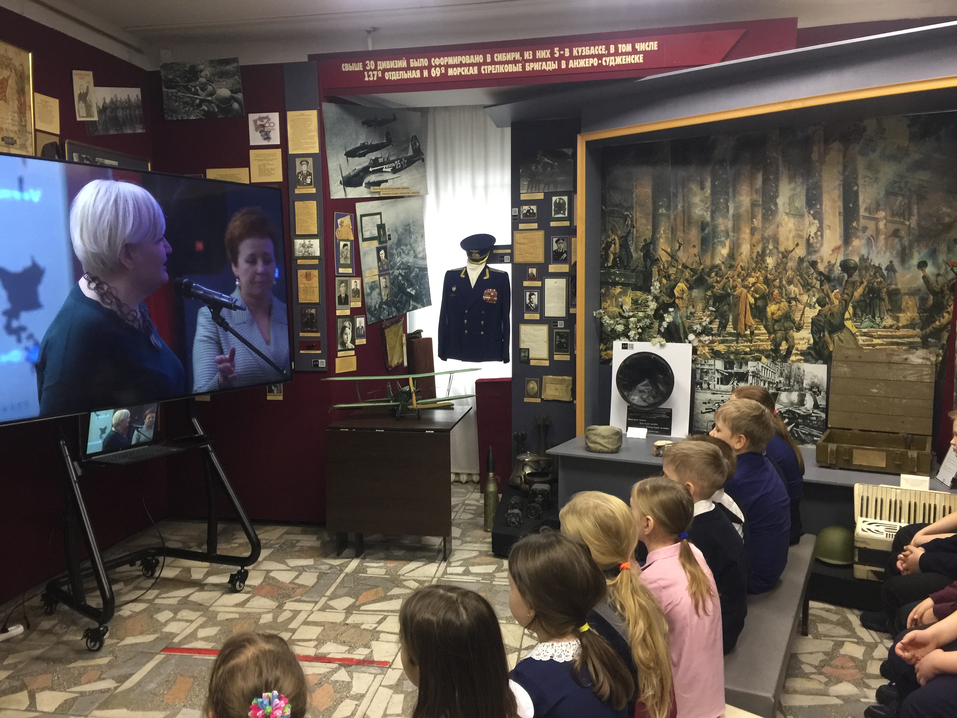 22 февраля 2023 года в 14:00 в городском краеведческом музее Анжеро-Судженского городского округа учащиеся МБОУ «СОШ №3 с УИОП им. Г. Панфилова» стали участниками Всекузбасского урока мужества «Есть такая профессия – Родину защищать». Мероприятие началось с приветственного слова Министра образования Кузбасса Софьи Юрьевны Балакиревой. Она подчеркнула важность гражданско-патриотического воспитания, необходимость защищать свою Родину во все времена и актуальность профессии военного. Представители музеев из разных городов Кузбасса рассказали о своих земляках – героях-кузбассовцев, проявивших себя на полях сражений. Ребята в онлайн-формате посетили выставку Кузбасского Государственного краеведческого музея, посвященную героям Великой Отечественной войны 1941 – 1945 гг. После завершения трансляции учащимся в зале военной истории Анжеро-Судженского краеведческого музея рассказали о подвигах наших анжеросудженцев.