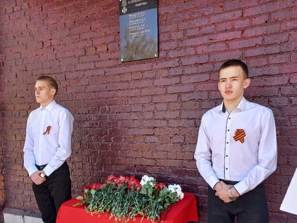 На церемонии открытия мемориальной доски в честь выпускников-героев присутствовали представители администрации города, родные близкие парней, их друзья и жители посёлка Северный Маганак.
