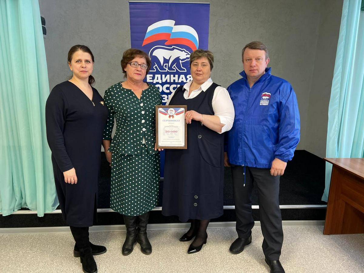 В селе Таловка Яшкинского муниципального округа после ремонта открылся клуб. Секретарь местного отделения партии «Единая Россия» Юрий Вульф вручил коллективу клуба сертификат на приобретение проектора.