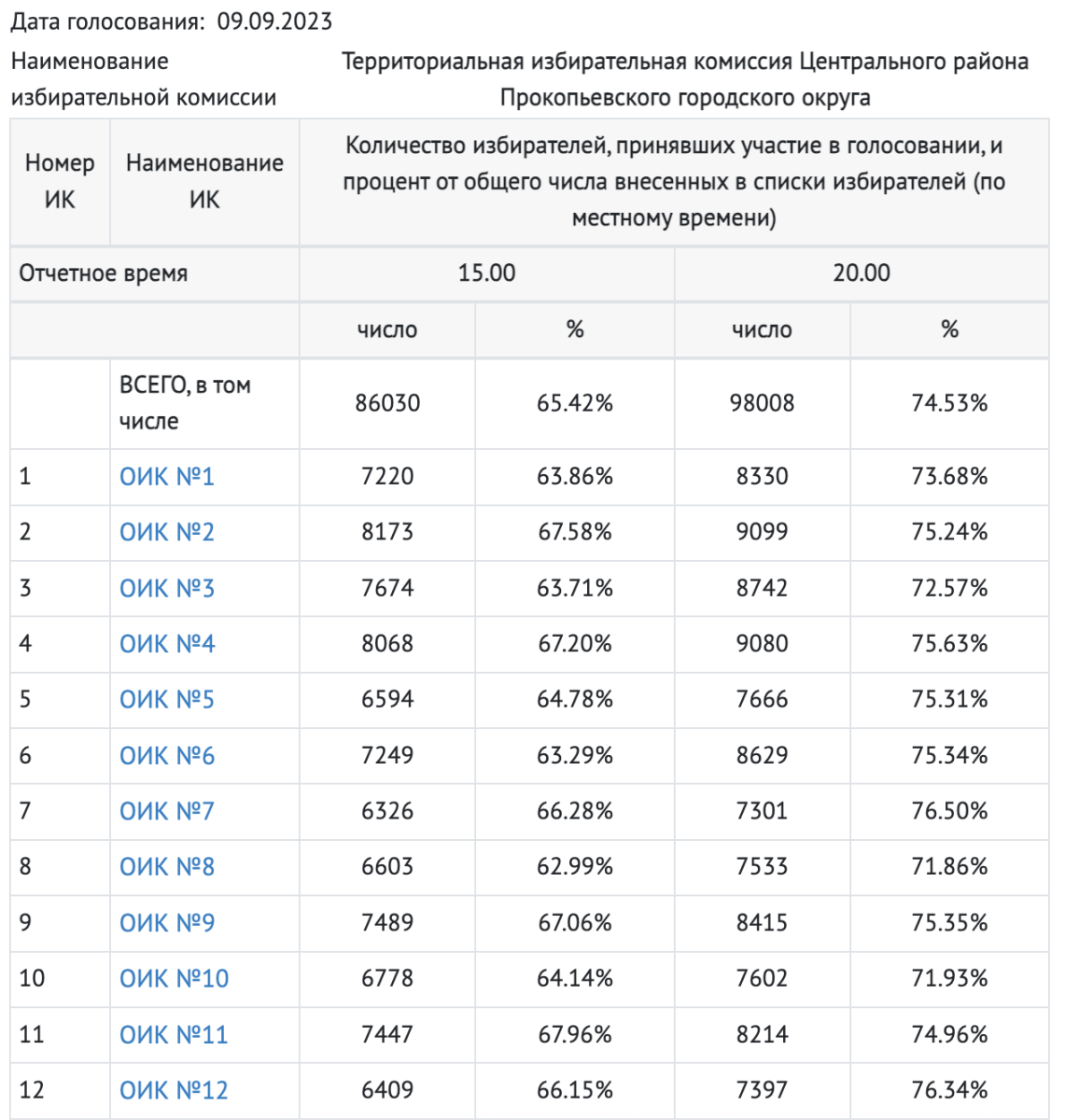 Согласно данным ЦИК, в Прокопьевске явка за два дня голосований в среднем во избирательным округам составила 75%. Напомним, избирательные участники закроются сегодня в 20:00.