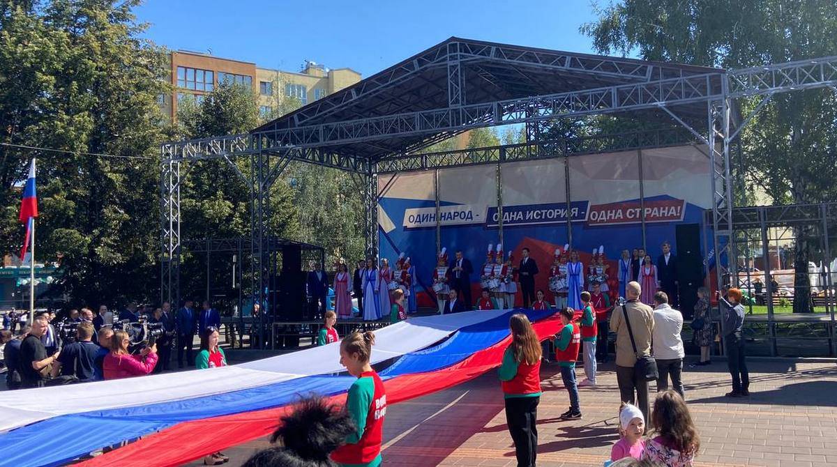 Кемеровчане развернули 25-метровый флаг России