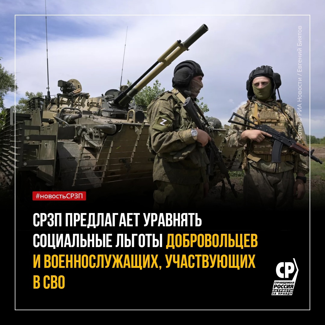 ☝ СПРАВЕДЛИВАЯ РОССИЯ – ЗА ПРАВДУ предлагает расширить социальные права и гарантии добровольцев: