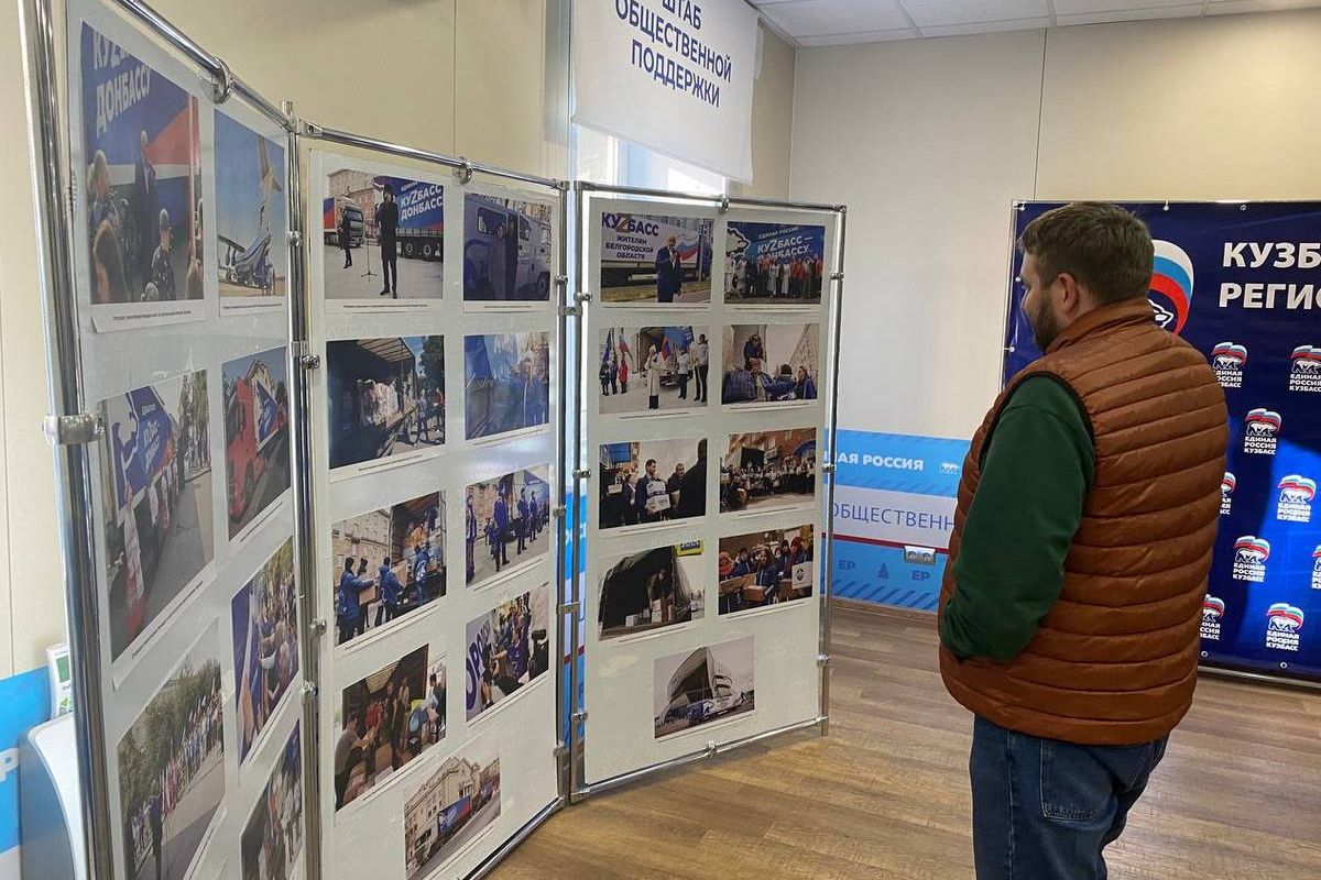 Кузбасское региональное отделение «Единой России» открыло фотовыставку, которая посвящена поддержке жителей народных республик. Размещенные на стендах кадры были сделаны во время отправок гуманитарной помощи из Кузбасса в Донбасс, а также во время разгрузки грузовиков с помощью жителями донбасского города Горловка. Экспозиция работает в Штабе общественной поддержки «Единой России».