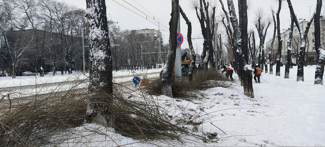 Теперь же делают санитарную обрезку деревьев буквально «по верхам», лишая кроны тонких веточек. Так обычно поступают, чтобы придать деревьям форму, до того как начнут распускаться листья. Или убрать повреждённые, высохшие, подмороженные ветви. А что получится в результате, увидим, когда деревья покроются зеленью.