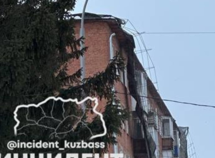 Ранее в нём произошёл сильный пожар. В Кемерове на улице Белозёрная 40а сильным ветром сорвало кровлю с крыши, сообщают пользователи соцсетей.