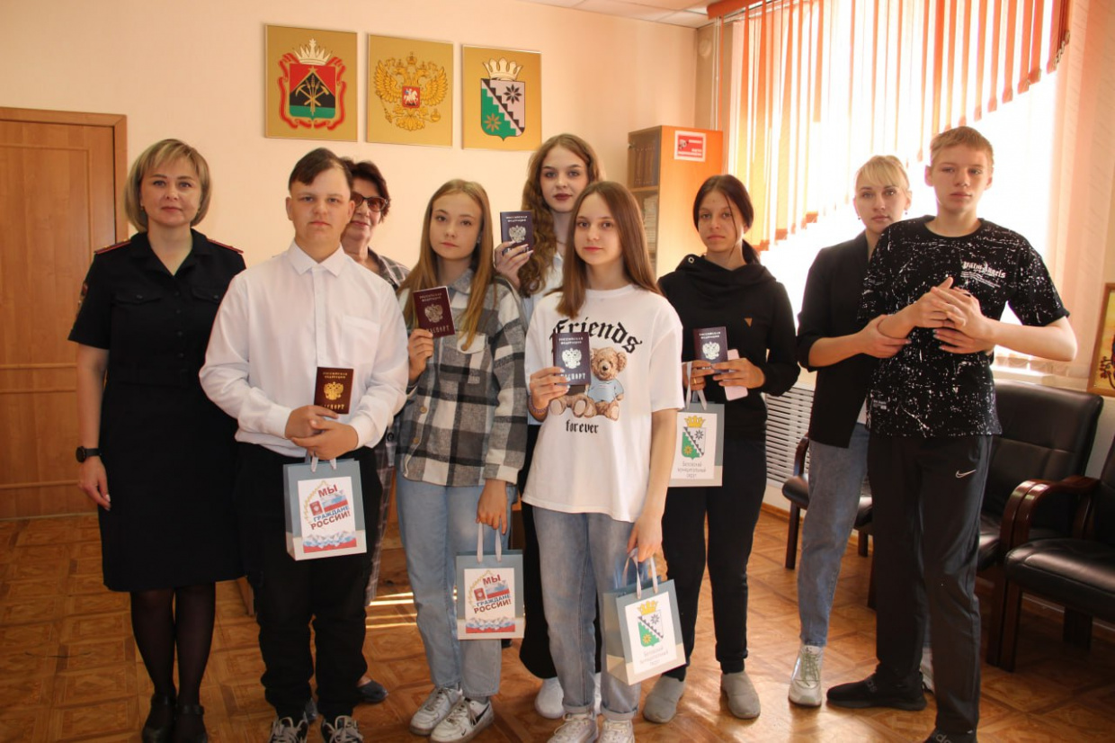Сегодня, в День защиты детей, в администрации Беловского муниципального округа состоялась торжественная церемония вручения паспортов 14-летним школьникам, получающим свой паспорт впервые.