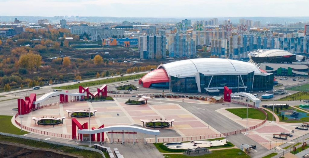 Парк Олимпийской славы включает в себя ледовый дворец «Кузбасс», спорткомплекс «Кузбасс-Арена», Фиджитал-центр, Московскую площадь и новую набережную Томи.