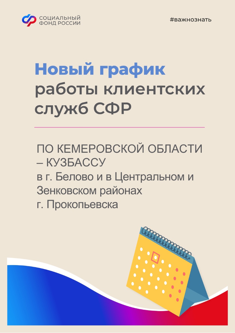 В рамках реализации пилотного проекта по оптимизации и совершенствованию процессов клиентского обслуживания с 10 апреля 2023 года две клиентские службы Отделения СФР по Кемеровской области – Кузбассу в Белово и Прокопьевске переходят на шестидневную рабочую неделю с режимом работы с 08:00 до 20:00.