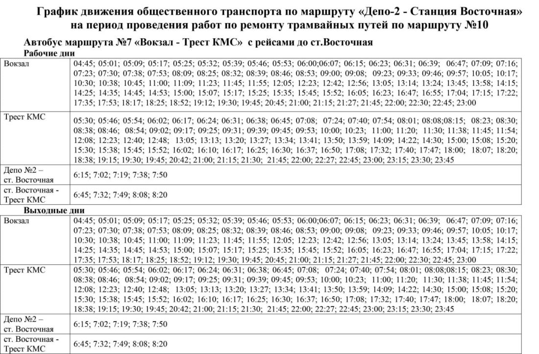 График движения трамвая №10