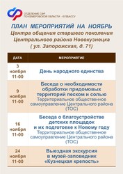 План мероприятий на ноябрь Центров общения старшего поколения города Новокузнецка