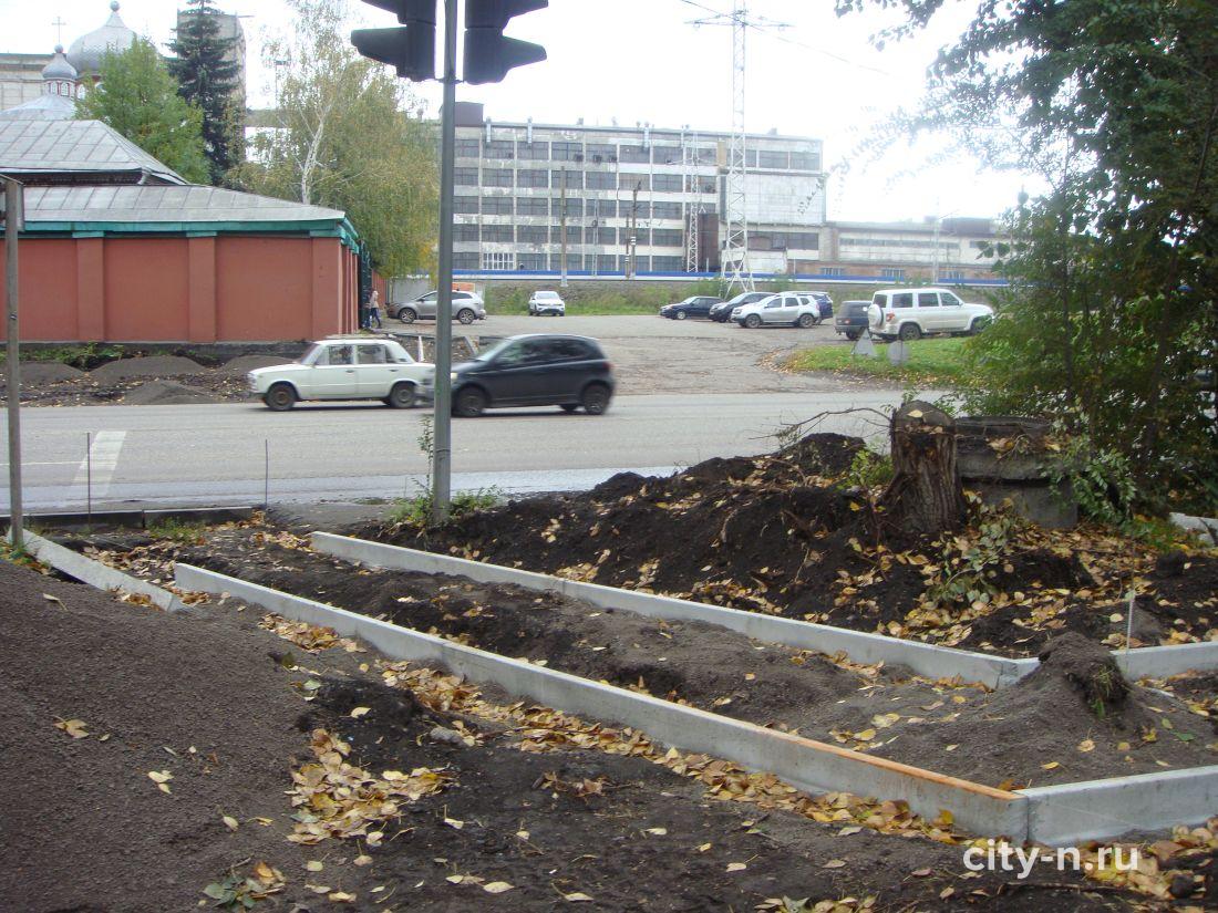 На участке уже разровняли грунт, уложили бордюры, подготовили основание для асфальтирования дорожки.
