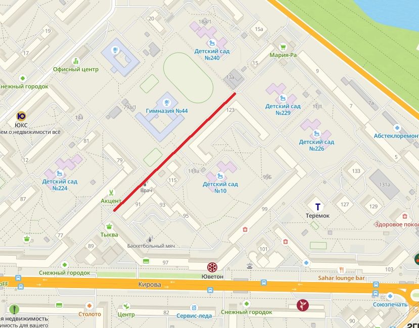 В рамках муниципального контракта должны быть выполнены работы по установке освещения вдоль домов №№ 91, 97, 99, 115, 119 и 123.