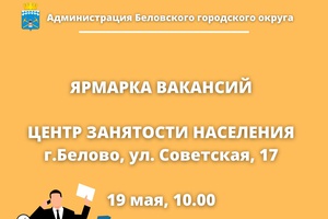 19 мая в Центре занятости населения города Белово состоится ярмарка вакансий.