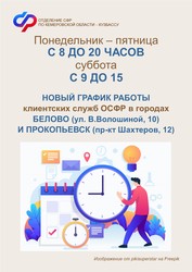 Время работы клиентских служб в городах Белово и Прокопьевске