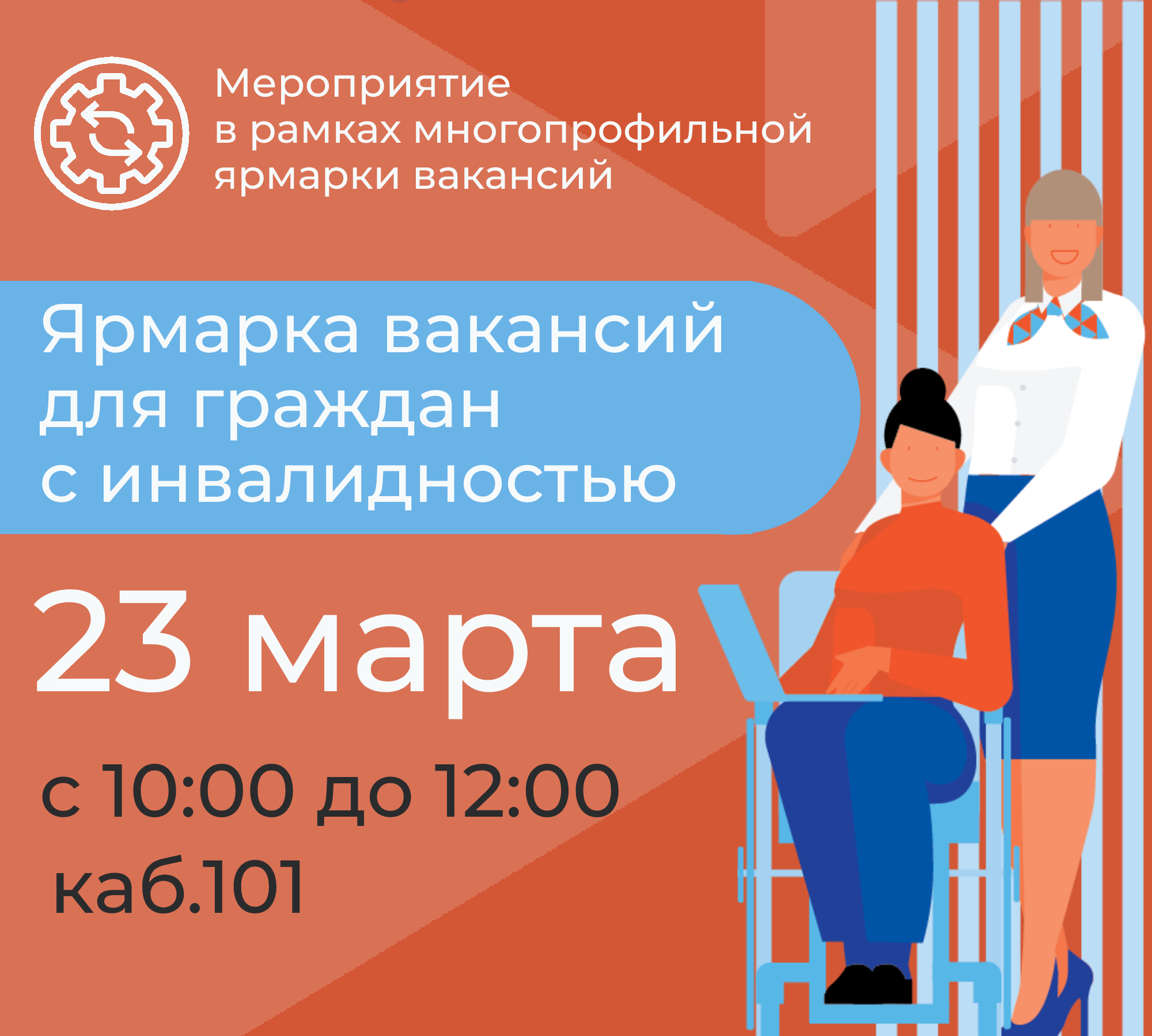 23 марта в рамках многопрофильной ярмарки вакансий пройдет ярмарка вакансий для граждан с инвалидностью.
