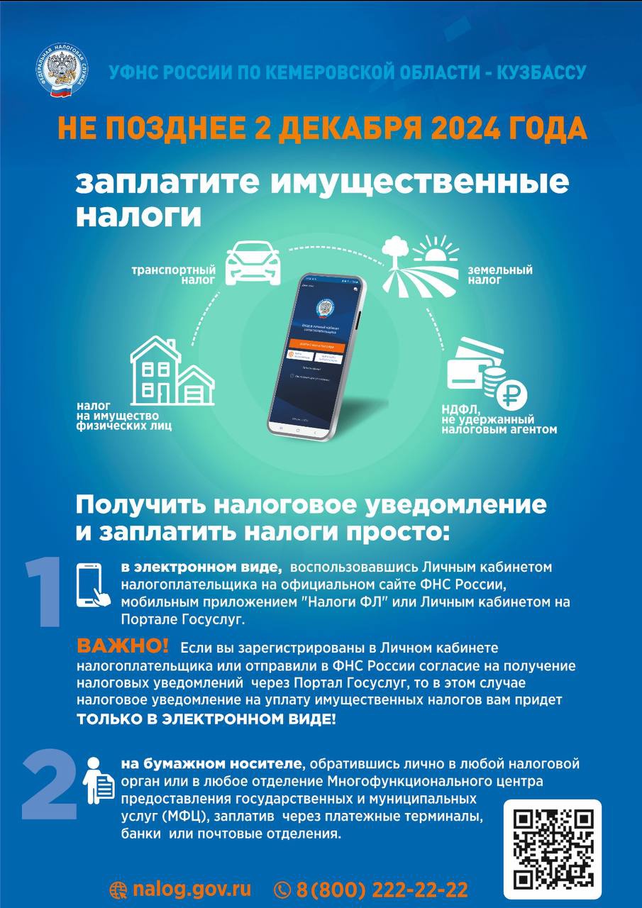 Напоминаем вам, что оплачивать налог на имущество необходимо не позднее 2 декабря. Это важное обязательство, которое необходимо выполнять в срок, чтобы избежать возможных штрафов и пени.
