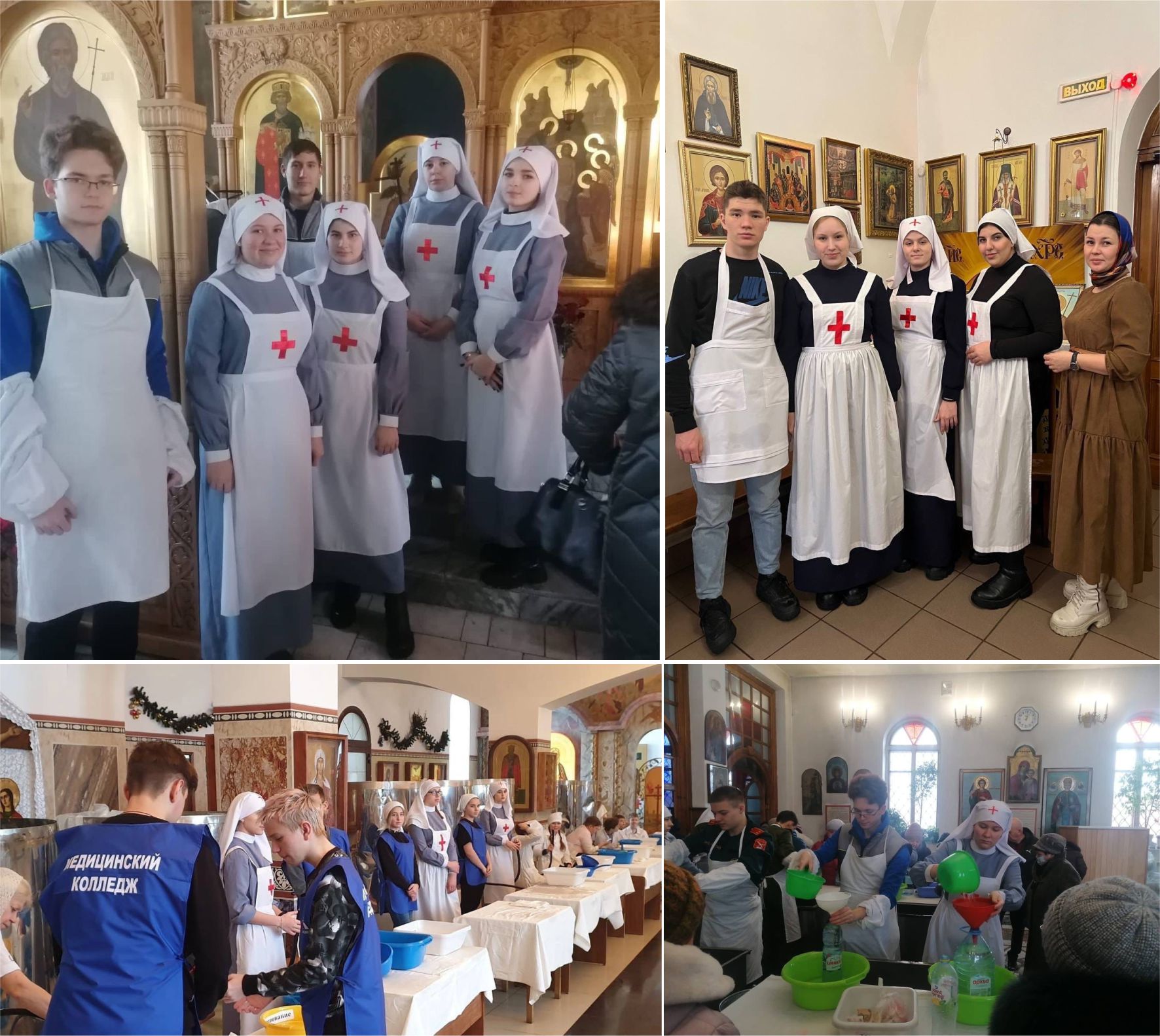 Традиционно в важный для всех христиан день – Крещение , студенты-волонтеры Кузбасского медицинского колледжа помогают разливать крещенскую воду посетителям Знаменского соборного комплекса и храма великомученика и целителя Пантелеимона, который находится на территории Кузбасской областной клинической больницы имени С.В. Беляева.