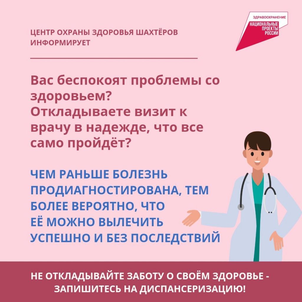 Благодаря национальному проекту "Здравоохранение" диспансеризация доступна каждому. Записывайтесь, даже если ничего не беспокоит - болезнь может протекать бессимптомно.