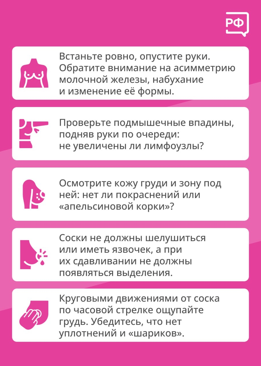 Октябрь — всемирный месяц борьбы против рака груди. Регулярная самодиагностика рака молочной железы помогает женщинам чувствовать себя более уверенными и снижает риск неблагоприятного развития заболевания.