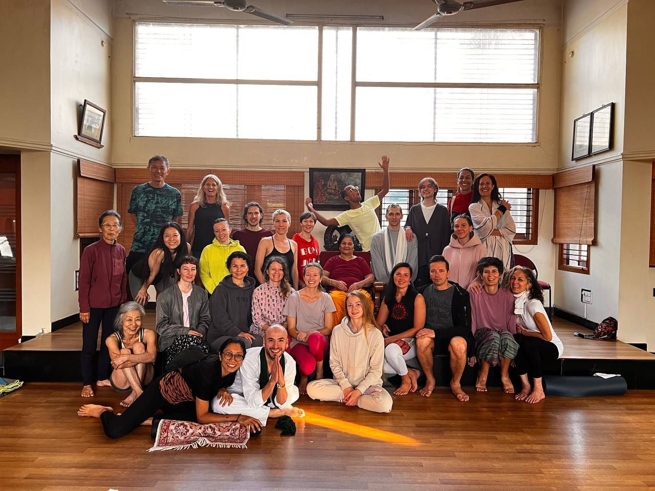 Поначалу мне было не совсем комфортно, ведь я совсем не знаю английского языка, но, несмотря на это, я быстро освоилась. Помогли Ольга и Павел Романовы, ведь они уже не в первый раз приехали в этот город и знали все порядки и большинство обычаев. Среди моих одногруппников, которых было не меньше 50 человек, были ребята из Читы, Иркутска, Новосибирска, европейских городов, а также Японии и Китая. Большинство из нас жили группами при школе в небольших двухэтажных домах. В скромных комнатах были лишь кровати и тумбы, но этого было вполне достаточно. Ели все в местном кафе или готовили на общей кухне. Ежедневно с шести до восьми утра у нас проходили занятия. Каждый выполнял упражнения в своём темпе — этим, кстати, и отличается аштанга-виньяса-йога от других направлений. А по субботам и воскресеньям мы занимались с преподавателем. Порой мне приходилось подстраивать свое дыхание под счёт учителя, так как я не успевала. Были дни, когда мы пели мантры на санскрите и учились выполнять дыхательные упражнения в технике пранаямы.