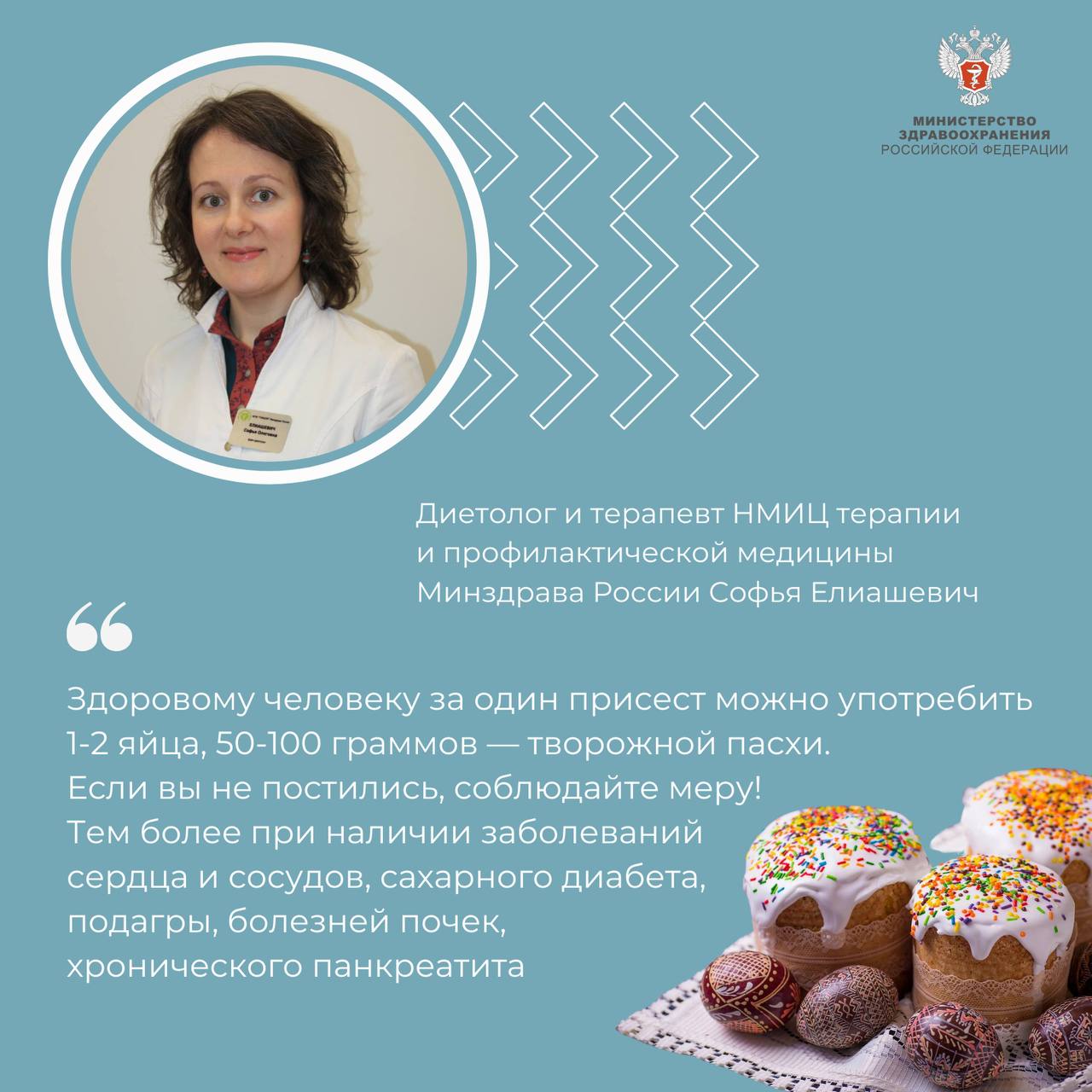 Диетолог и терапевт НМИЦ терапии и профилактической медицины Минздрава России Софья Елиашевич рассказала, сколько пасхальных яиц можно съесть за один прием пищи