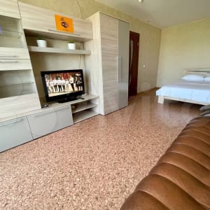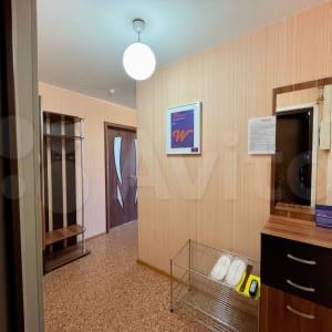 В квартире сделан свежий современный ремонт, потому что нам важен Ваш комфорт. Гостиная укомплектована кроватью, раскладывающимся диваном, шкафом, ТВ и Wi-Fi. Помимо этого кухня оснащена всей необходимой бытовой техникой: кухонной плитой, холодильником, микроволновой печью, электрическим чайником и фильтром для воды. Ванна с туалетом совмещены, отделка кафель. В ванной установлены: стиральная машина автомат, бойлер, фен. Каждому гостю мы предоставляем постельное белье из качественного белого текстиля. При длительном проживании бесплатно производится уборка каждые 3-5 дней.
