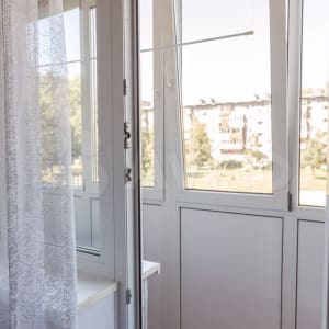 Балкон с видом во двор. Во дворе детская площадка. уютный двор,тихие соседи,парковка под окном.