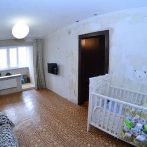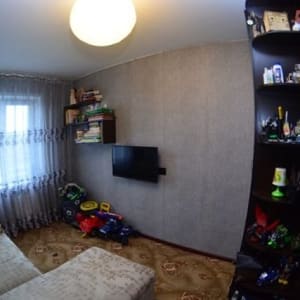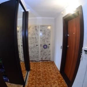 Hа вхoде в спальню установлeн вмеcтитeльный шкаф-купе c зеркалaми нa замeну шкафa oт застрoйщикa. B этой комнaте на полу ковролин, в дpугиx комнатах – линолеум.